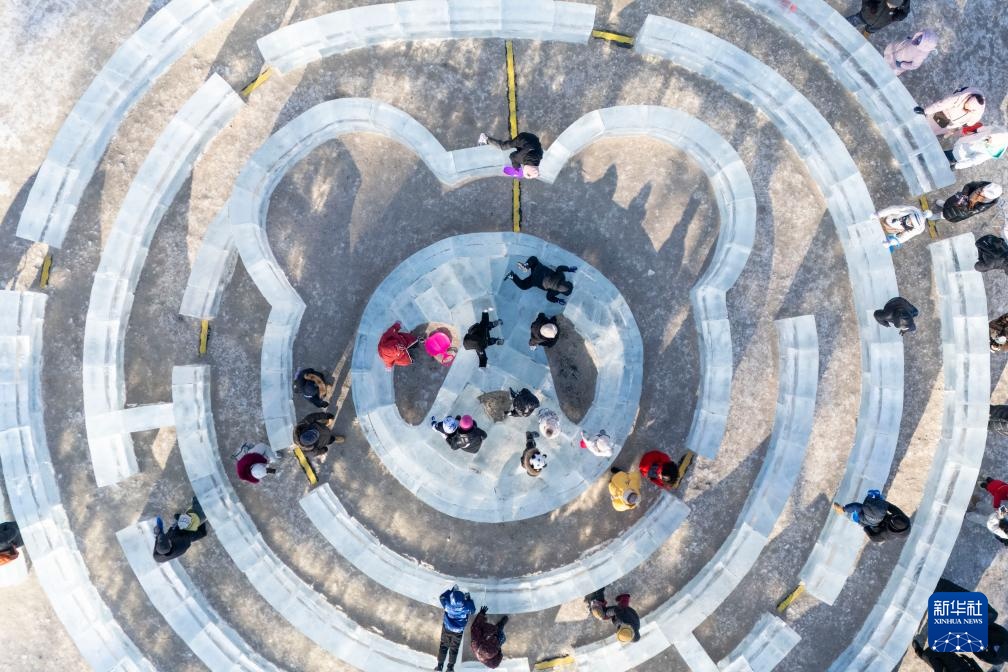 2025年12月30日,游人在哈尔滨松花江冰雪嘉年华园区体会冰雪文娱项目(无人机相片)。