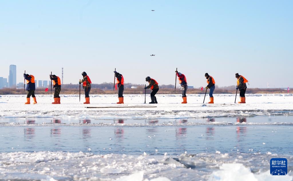 2026年1月1日,游人在哈尔滨市道里区松花江冰面上玩耍(无人机相片)。