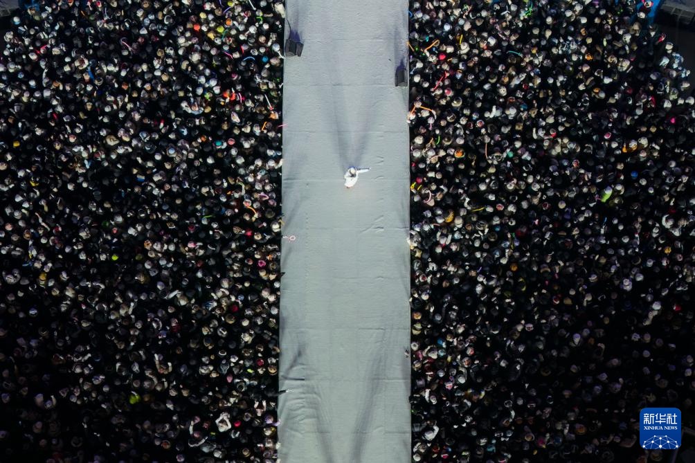 2025年12月31日,游人在哈尔滨冰雪大世界园区参加互动(无人机相片)。