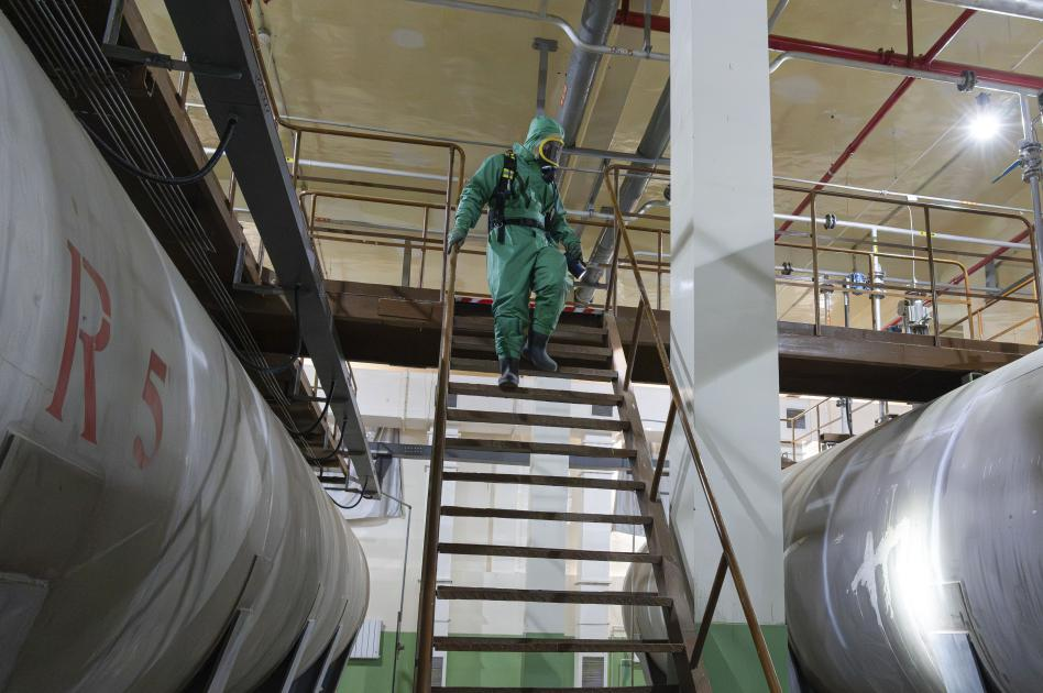 ↑2025年11月24日,作业人员在加注库区进行推动剂加注前查看。新华社记者 李明刚 摄