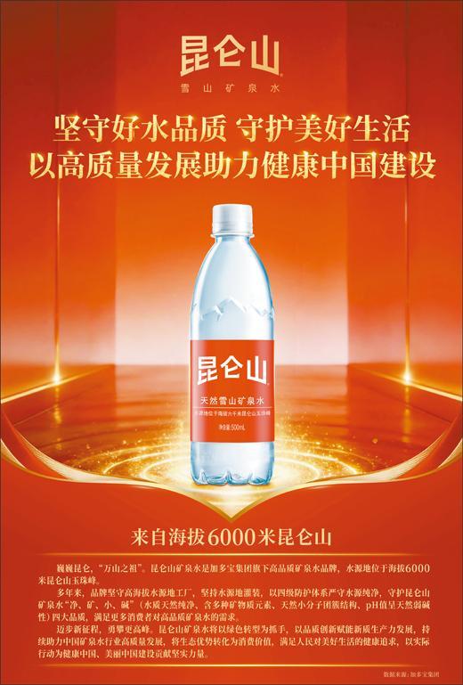 跨步新征途,勇攀更顶峰。昆仑山矿泉水将以绿色转型为抓手,以质量立异赋能新质生产力开展,继续助力我国矿泉水职业高水平质量的开展,将生态优势转化为消费价值,满意公民对美好生活的健康寻求,以实际行动为健康我国、美丽我国建造奉献坚实力气。